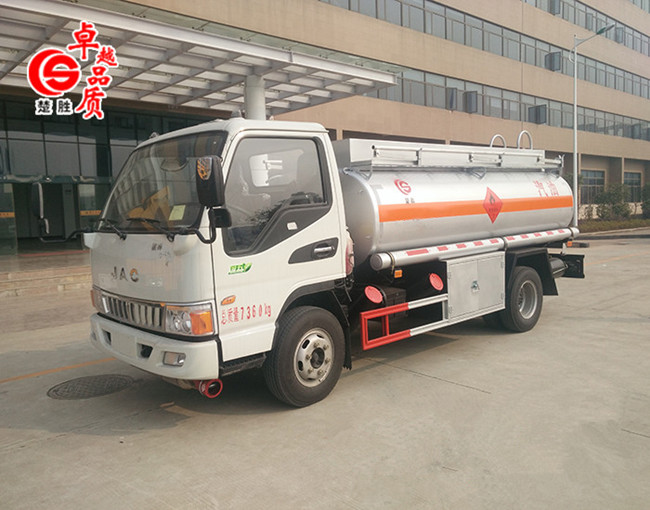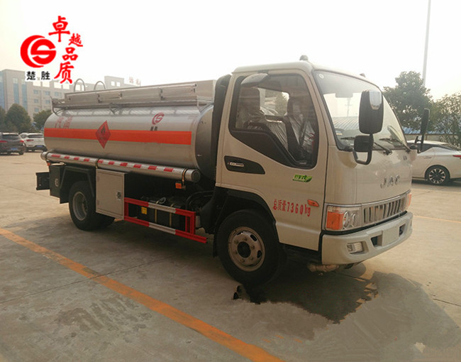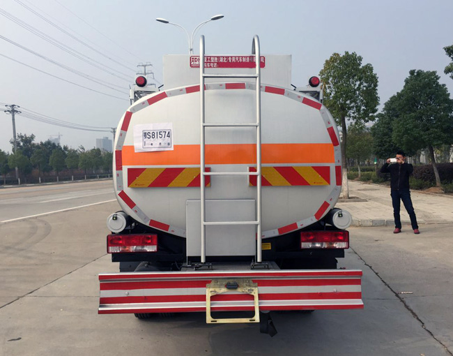 隨車配備可打進打出的加油泵,大品牌加油機(正星加油機、上海伯萊加油機、恒山加油機、長穩加油機等)、15米自動回位加油卷盤,加油槍,可以實現按“升”或“金額”計量。帶兩根罐體等長抽油管,配有快裝接頭,吸程6米。隨車配備兩支滅火器,兩個堵蓋,一個呼吸閥,一個防火帽,靜電帶,儲管筒帶兩把小鎖,兩側及后加強型保險杠,防滑爬梯,帶牌照燈,工具箱,告示箱。罐體貼反光標識,爆字或燃字或易燃液體字體。整車可選裝歐標全套:油氣回收閥、油氣回收接頭、海底閥(緊急切斷閥)、下裝油、防溢流探桿及探桿座、歐標罐口等。